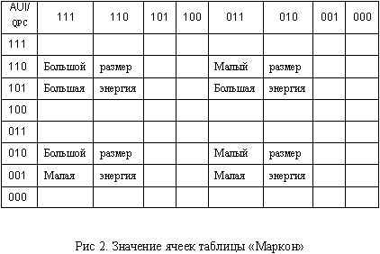 Таким образом, из 64 теоретически возможных ячеек остаются только 24 математически возможные ячейки подразделенные на однородные группы (не заштрихованы на рис. 1).