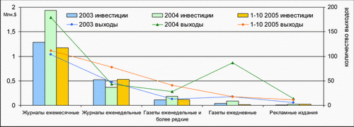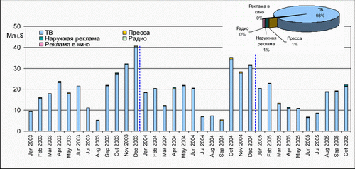 - Анализируемый период рекламной активности: январь 2003 – октябрь 2005 гг.