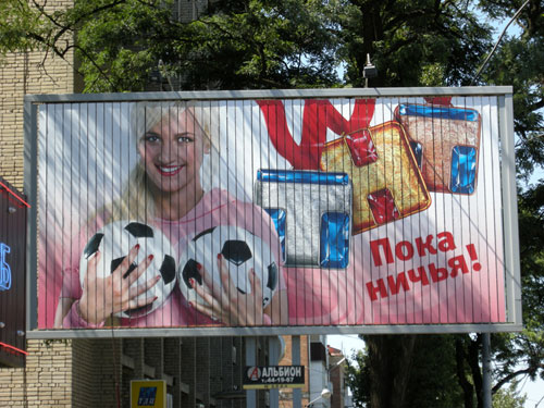 Описание: Ничья? Что ничья. Почему ничья. На эти вопросы реклама так и не ответила. Ничья, а по-моему правая команда победила (пересечение Ворошиловского и Красноармейской, г. Ростов-на-Дону)