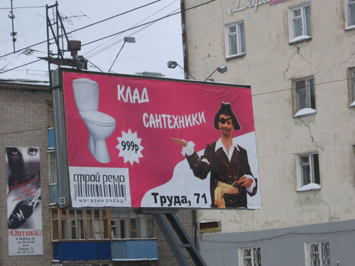 Описание: Реклама висела с января по март около продуктового супермаркета г. Киров