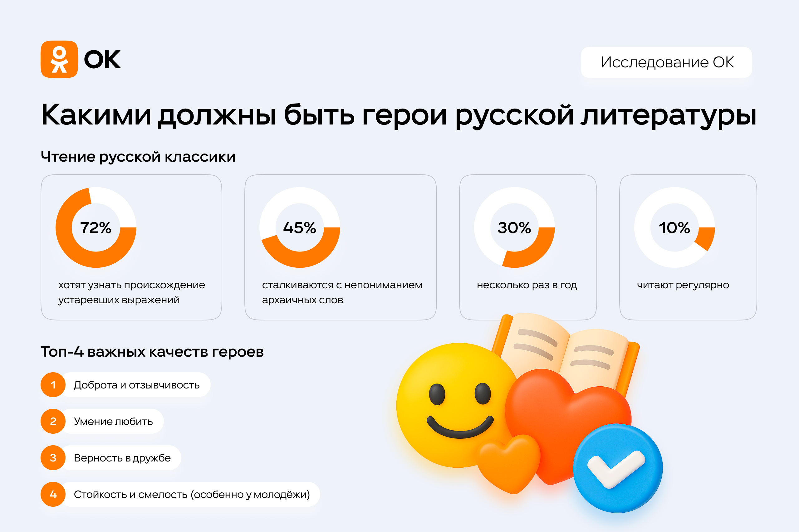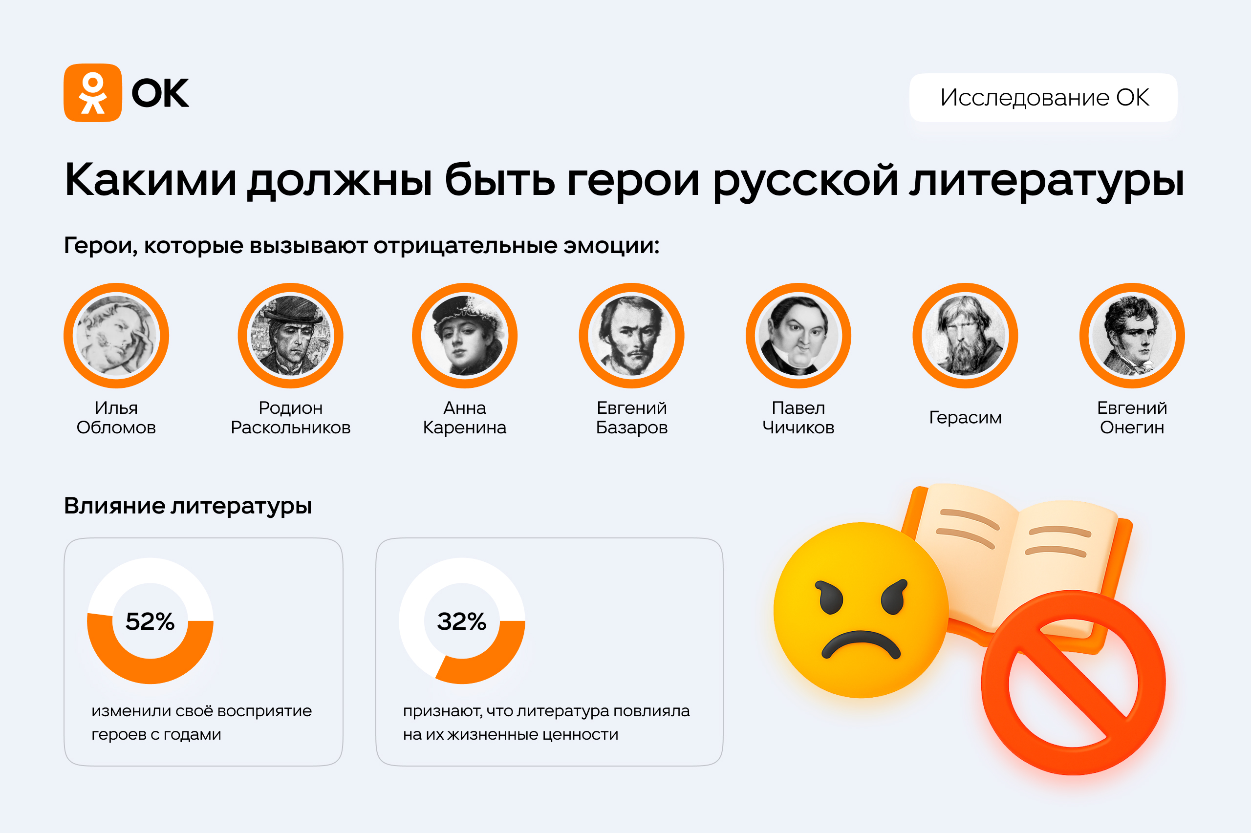 Социальная сеть Одноклассники провела исследование среди 3000 россиян и выяснила, как русская классическая литература повлияла на формирование жизненных ценностей у жителей нашей страны, и узнала об их отношении к персонажам произведений.