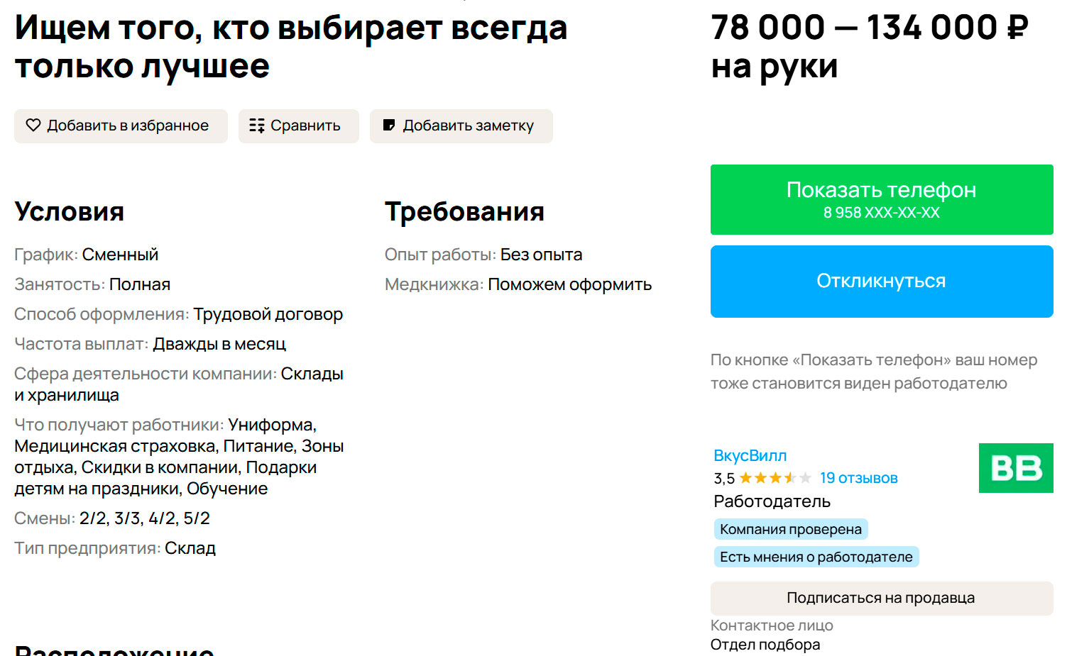 Присоединиться к команде можно уже сегодня — просто введите «ВкусВилл» на Авито или перейдите по ссылке в профиле компании.