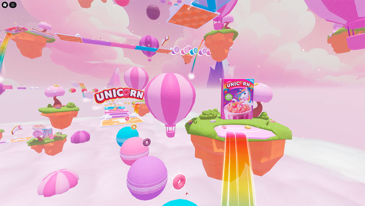 Пройдя сквозь портал из одного из популярных Roblox-миров, игрок оказывался в волшебной брендированной вселенной Unicorn — фантастическом мире в облаках. Его встречал дружелюбный маскот бренда — единорог, который делился с игроками секретами идеальных завтраков, а затем предлагал пройти захватывающую полосу препятствий.