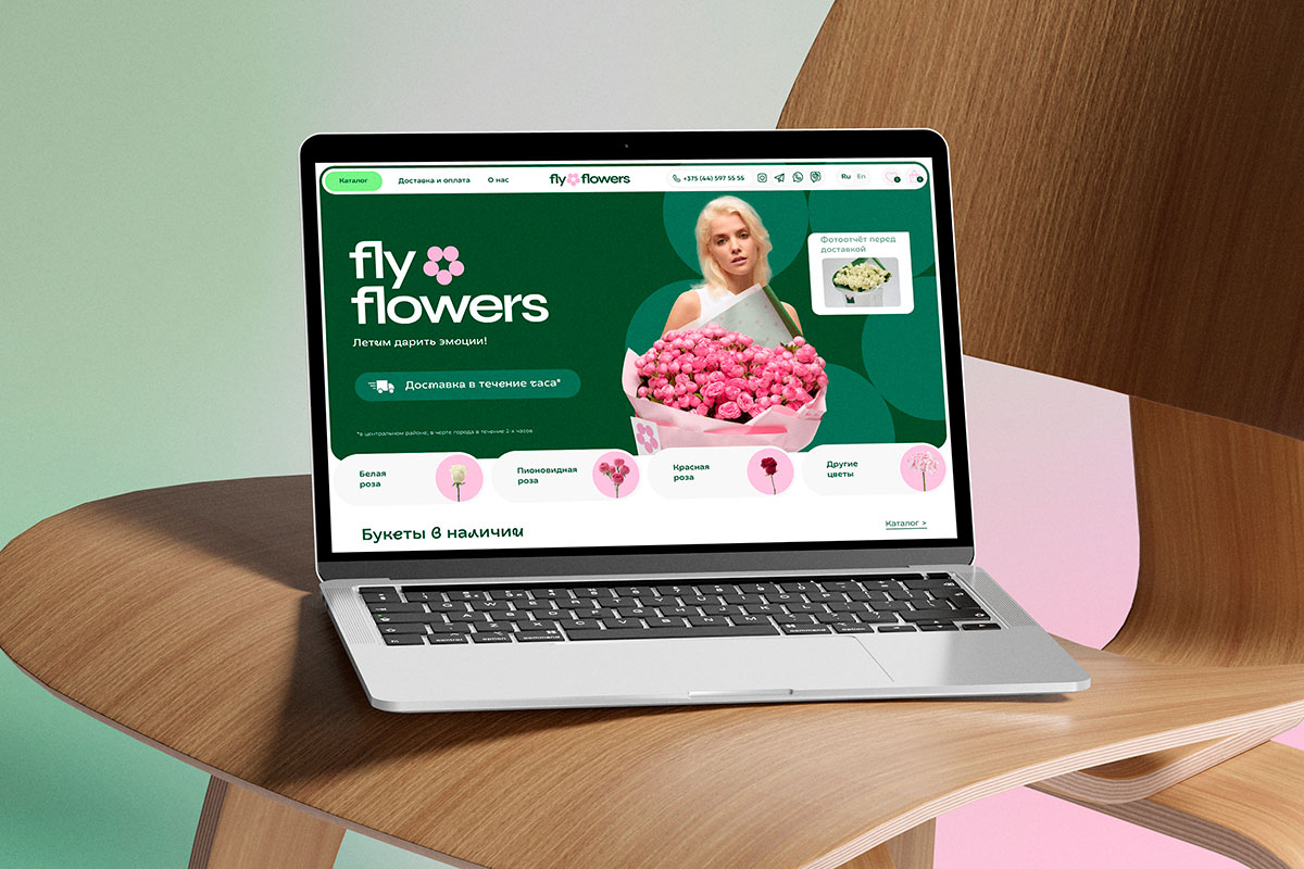 Fly Flowers — новый сервис быстрой доставки букетов. Идея основана на простой, но сильной эмоции: желание подарить радость должно исполняться мгновенно. В Минске до появления проекта не существовало действительно оперативного сервиса, который мог бы доставить цветы в течение часа, сохраняя при этом качество, эстетику и свежесть. Клиент видел проект как современную франшизу, которая со временем начнет масштабироваться. Перед Fabula Branding стояла задача создать бренд, который передаст ощущение легкости, скорости и красоты момента.