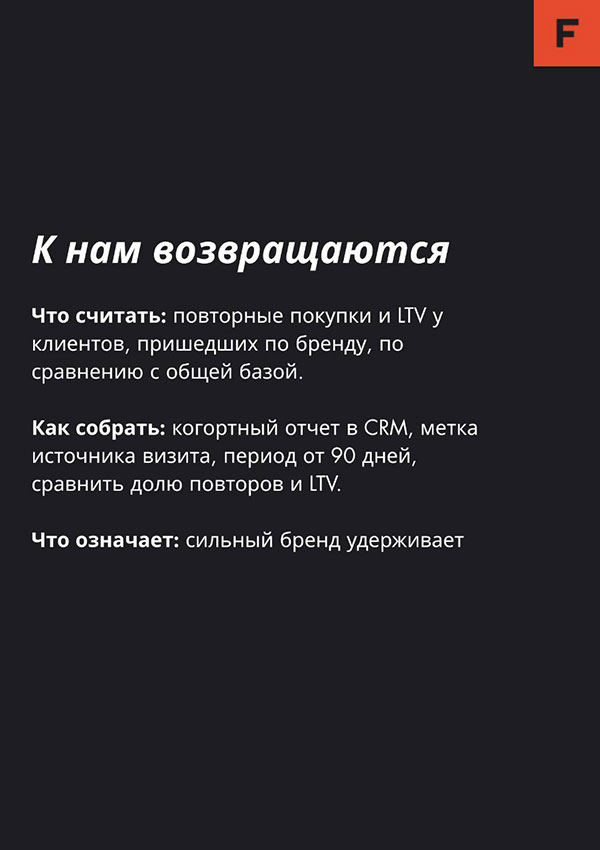 Эксперты агентства FANATIC собрали метрики, которые читаются в P&L и не требуют долгих исследований. В основе лежит простая логика памяти и выбора: компанию вспоминают чаще, приходят по имени охотнее, конвертируются в клиентов лучше, готовы платить больше и остаются с компанией дольше.
