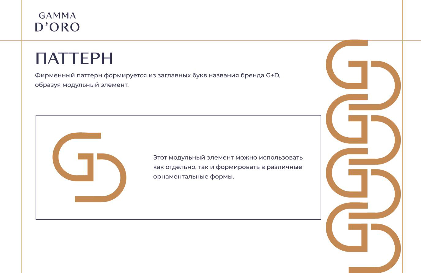 - Система паттернов на основе фирменных букв G и D;