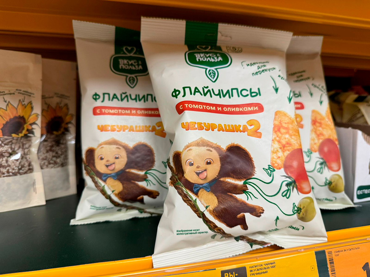 Чебурашка на полках магазина и в мобильной игре