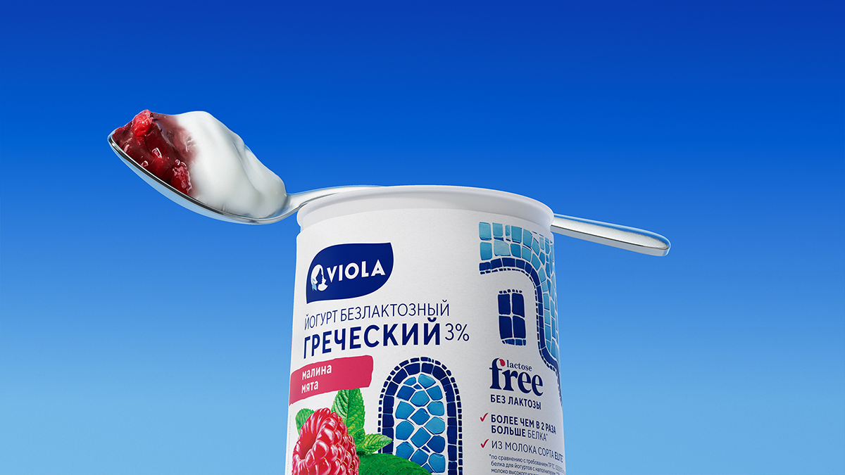 Агентство Ohmybrand разработало дизайн новой линейки безлактозных греческих йогуртов Viola.