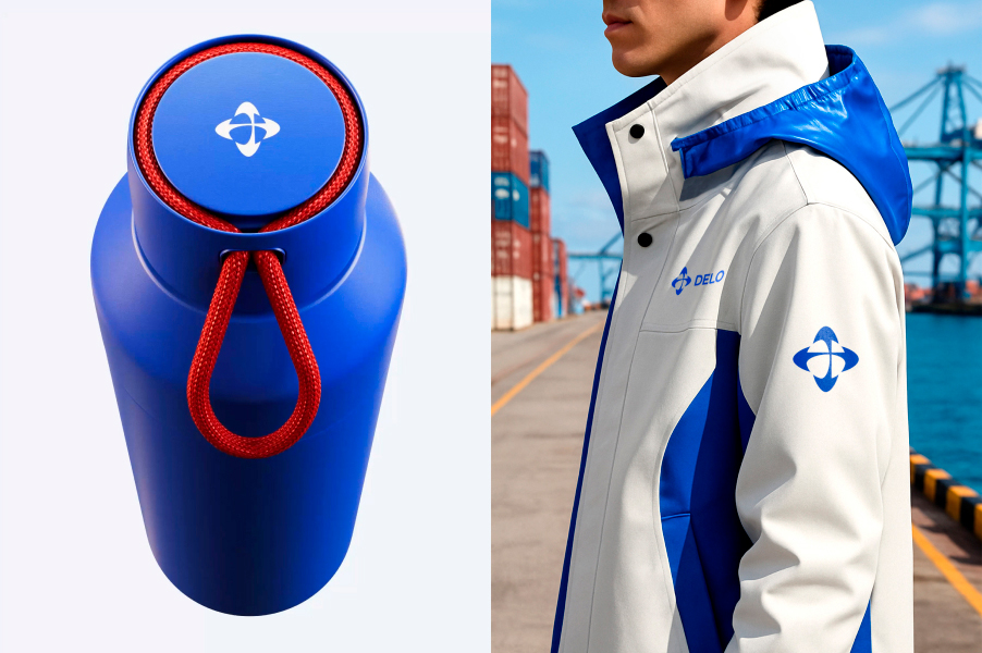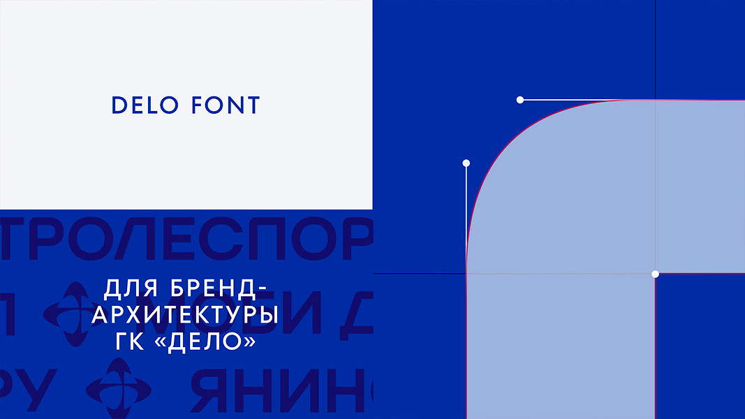 Для обновлённой айдентики ГК «Дело» был разработан собственный фирменный шрифт DELO FONT, который решает сразу две ключевые задачи. Во-первых, он создан в прямой связи с формой логотипа: в нём сочетаются мягкие скругления, отсылающие к образу земного шара и глобальности логистических процессов, и строгие прямые линии, подчеркивающие структурность, надёжность и инженерную точность. Благодаря этому визуальная система выглядит цельной, а логотип – гармоничным и сбалансированным между современностью и корпоративной строгостью.