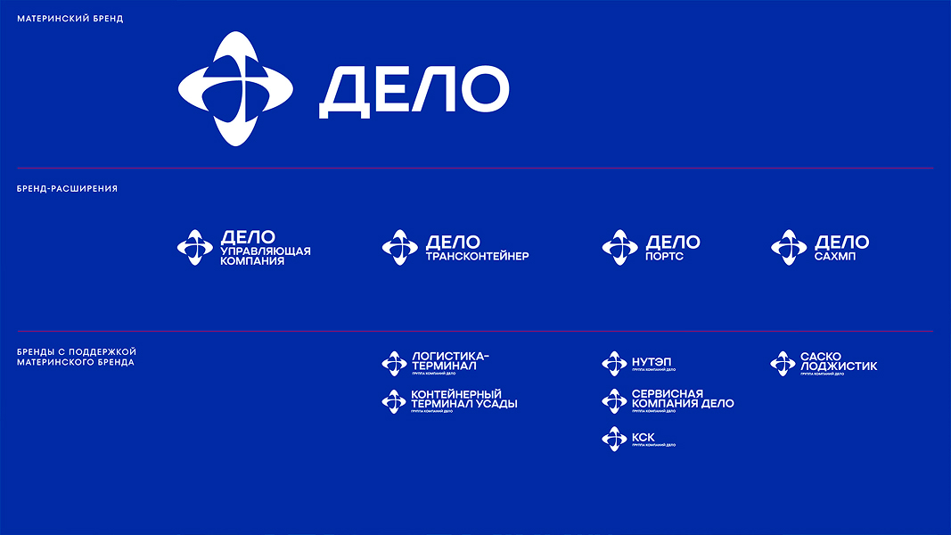 После разработки и утверждения нового логотипа была переработана бренд-архитектура Группы компаний: она стала гибридной, где основным бренд-активом является материнский бренд «Дело».