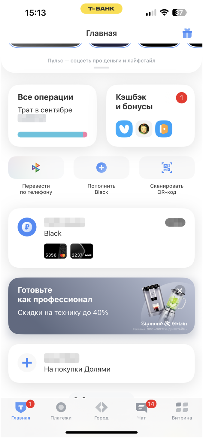 - Есть точные сценарии контакта: главный экран, история операций, детали счета, раздел «Кэшбэк и бонусы».