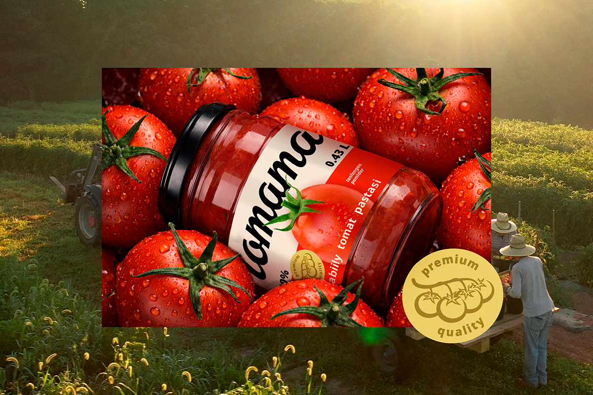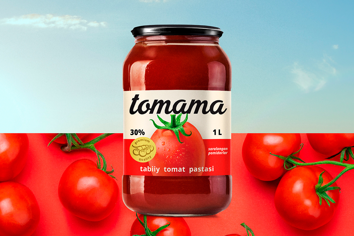 Нейм Tomama — это фантазийное соединение слов «томат» и «мама». Он одновременно передает суть продукта и несет в себе ассоциации с заботой, теплом и традицией. «Мама» в названии усиливает доверие, указывает на естественность и домашний вкус, формирует близкий, человечный образ бренда.