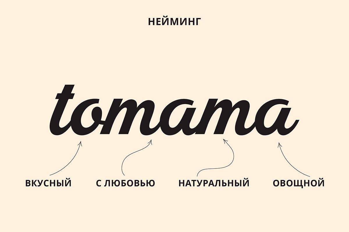 По звучанию Tomama — легкое, позитвное, доброе слово. Оно хорошо работает в устной речи и легко запоминается. Фактически нейм сразу задает эмоциональный код бренда: дом, тепло, семья, забота, натуральность и вкус, который возвращает к истокам.