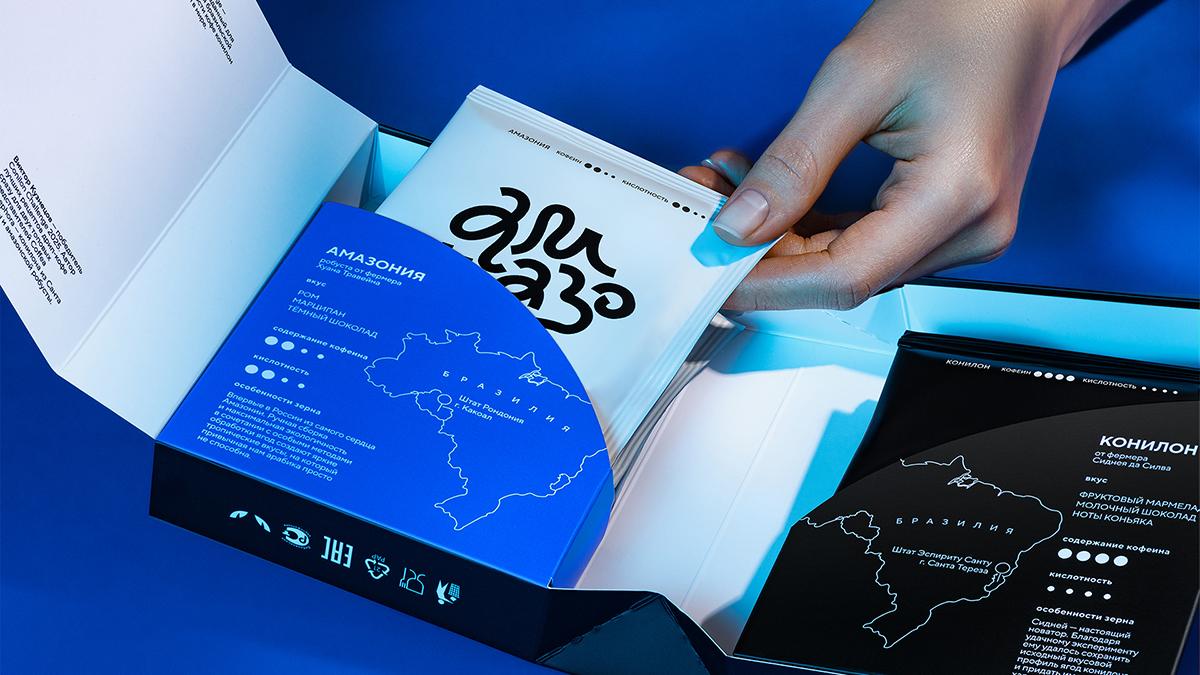В итоге новая конструкция разделила два вкуса кофе, визуально подчеркнула их территориальные различия и превратила процесс знакомства с продуктом в настоящее погружение в мир бразильской канефоры. Упаковка была представлена на Дне кофе в Посольстве Бразилии и горячо встречена профессионалами рынка.