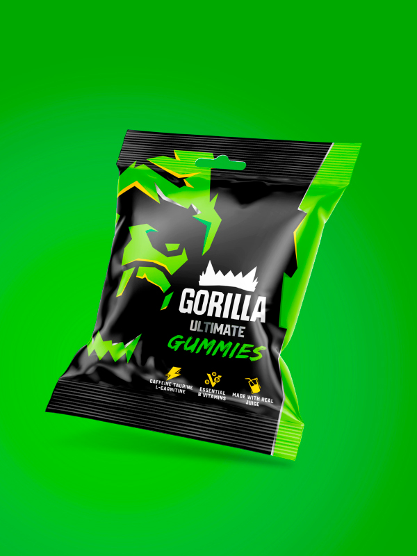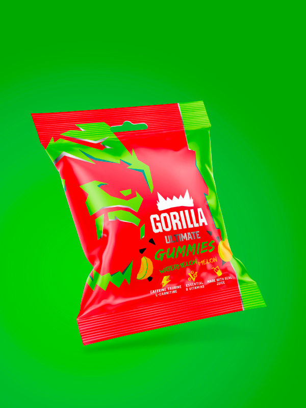 Dutch Design House разработал дизайн упаковки для Gorilla Ultimate Gummies — линейки энергетических жевательных конфет на натуральных ингредиентах. Проект стал первым выходом бренда Gorilla за пределы привычной категории энергетических напитков.