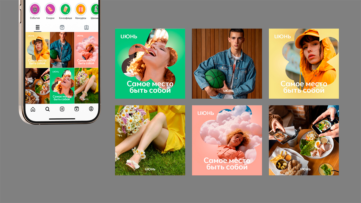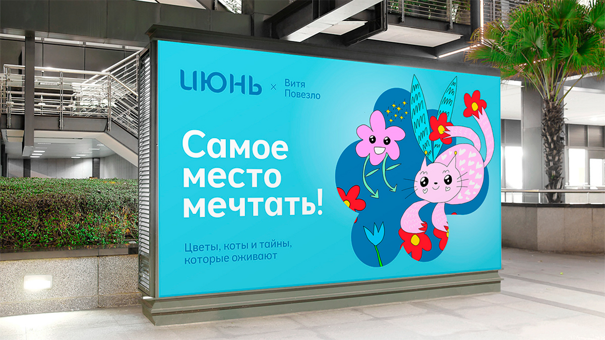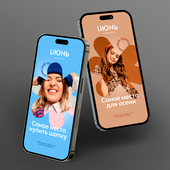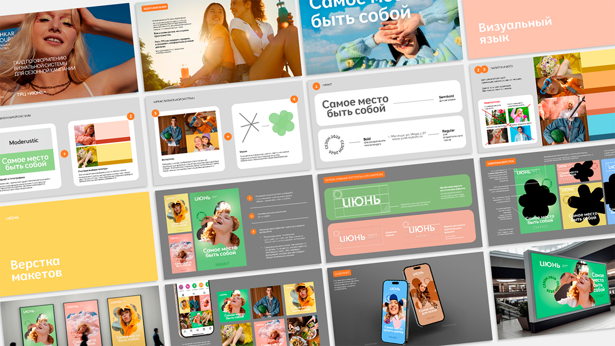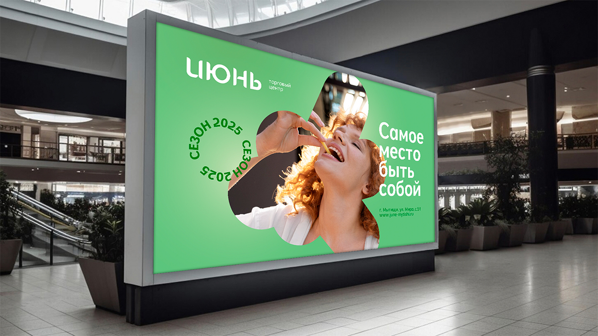ТРЦ «Июнь» получил свежий, яркий образ, который легко масштабировать и использовать в разных рекламных форматах — от наружной рекламы до digital.