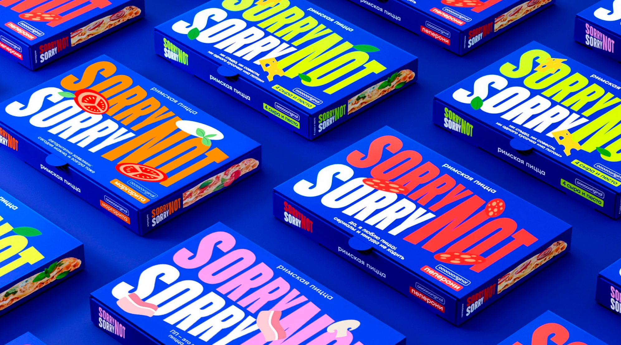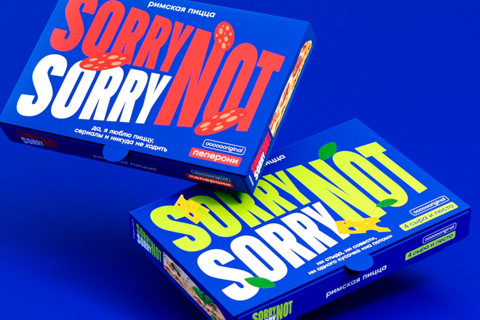Продукция Sorry Not Sorry выделяется среди аналогичных товаров на полке благодаря смелому и инновационному дизайну. Новый брендинг разрушает стереотипы и призывает не стесняться своих guilty pleasure. Замороженная пицца с новым дизайном и концепцией получила положительные отклики среди жюри на различных фестивалях, многие из которых до конца не верили в реальность существования этого продукта. Depot разрушает стереотипы и выводит брендинг на совершенно уникальный визуальный и коммуникационный уровень.