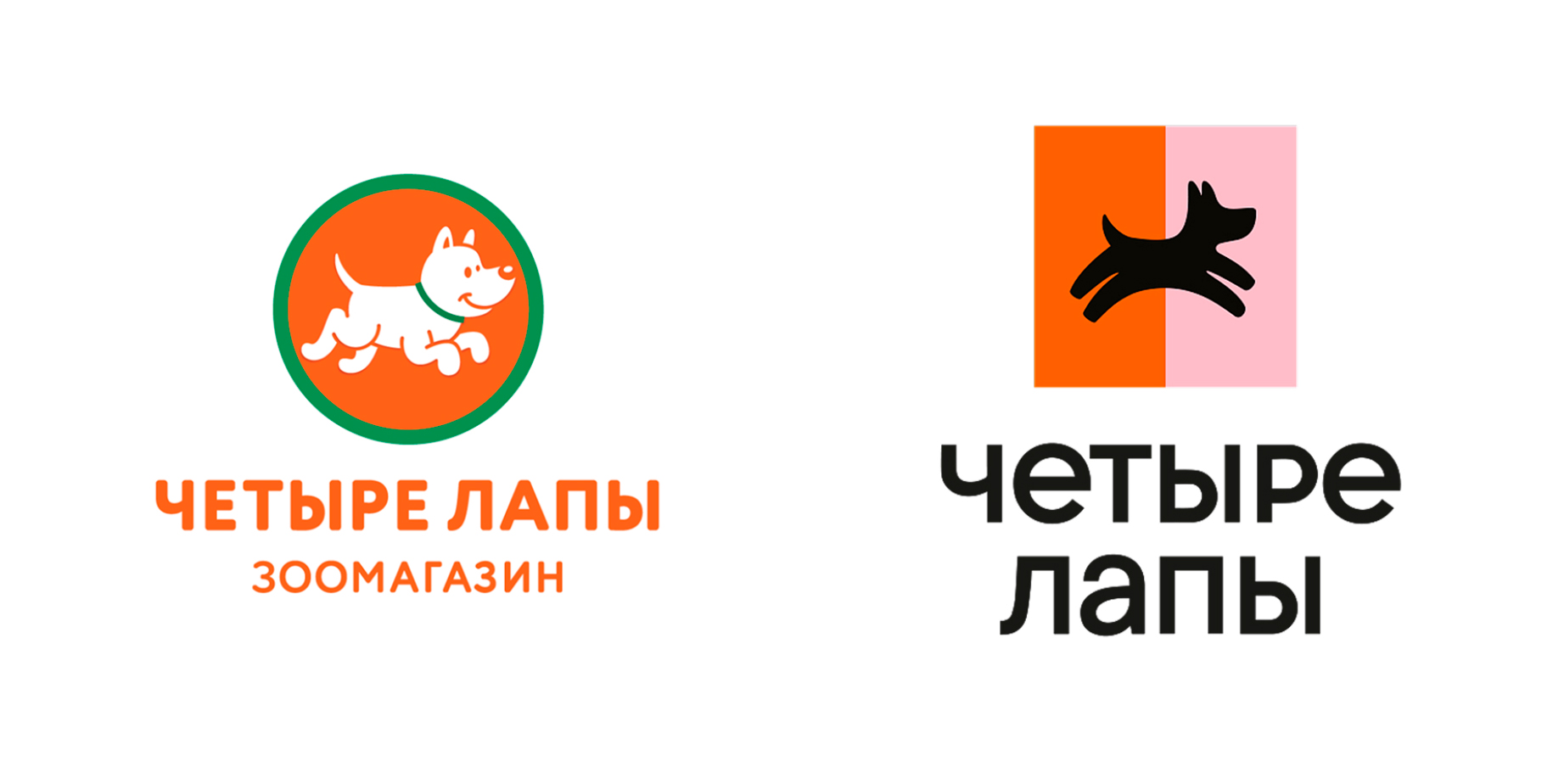 Одним из примеров стал бренд зоомагазинов «Четыре лапы». Ребрендингу предшествовало то, что компания развивалась не только за счёт открытия магазинов, но и ветклиник, груминг-салонов, кабинетов здоровья. В связи с этим расширялась и целевая аудитория бренда. Такие перемены в бизнесе нужно было подружить с обновленным позиционированием и фирменным стилем. В решении этой задачи помогло проведение ребрендинга магазинов, которые уже перестали быть просто торговыми точками и превратились в новую экосистему под прежним названием.