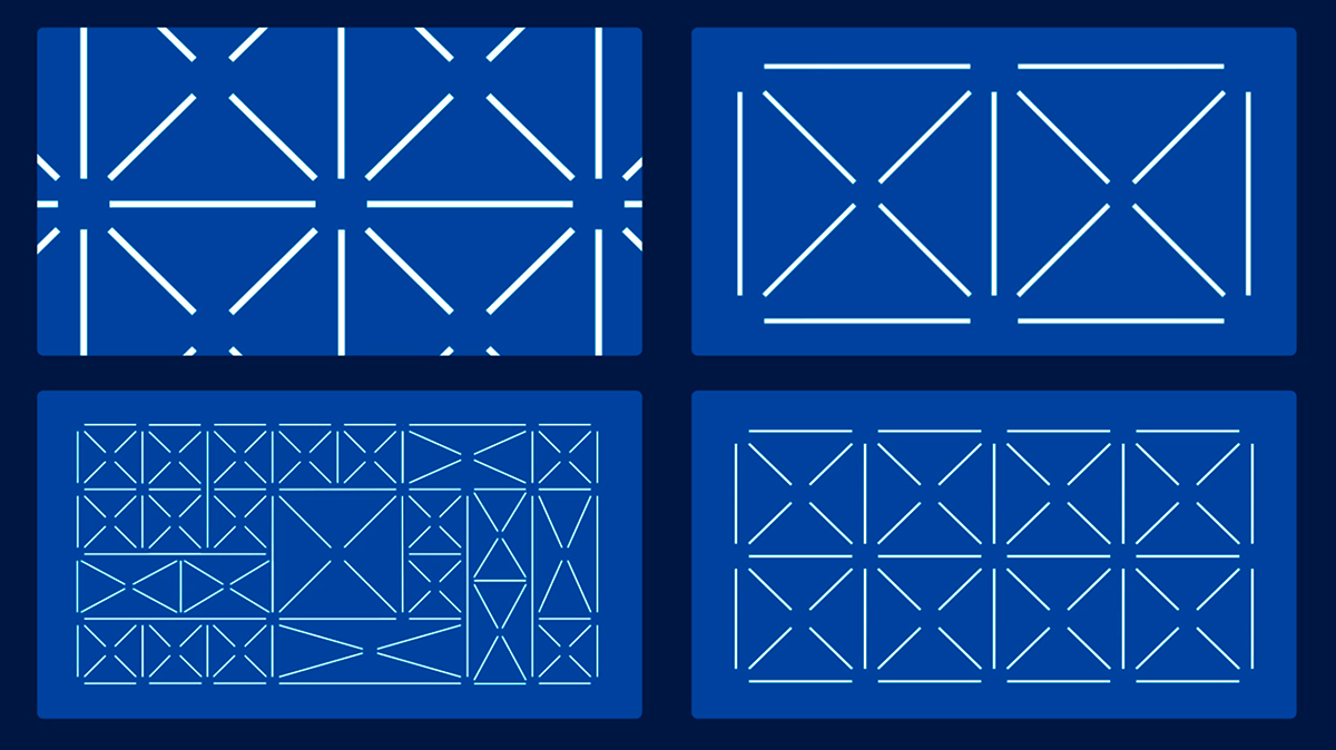 Этот образ мы трансформировали в графический приём: из линий и пересечений сформировали римскую цифру XXX (30), а затем развили идею в гибкую модульную сетку.