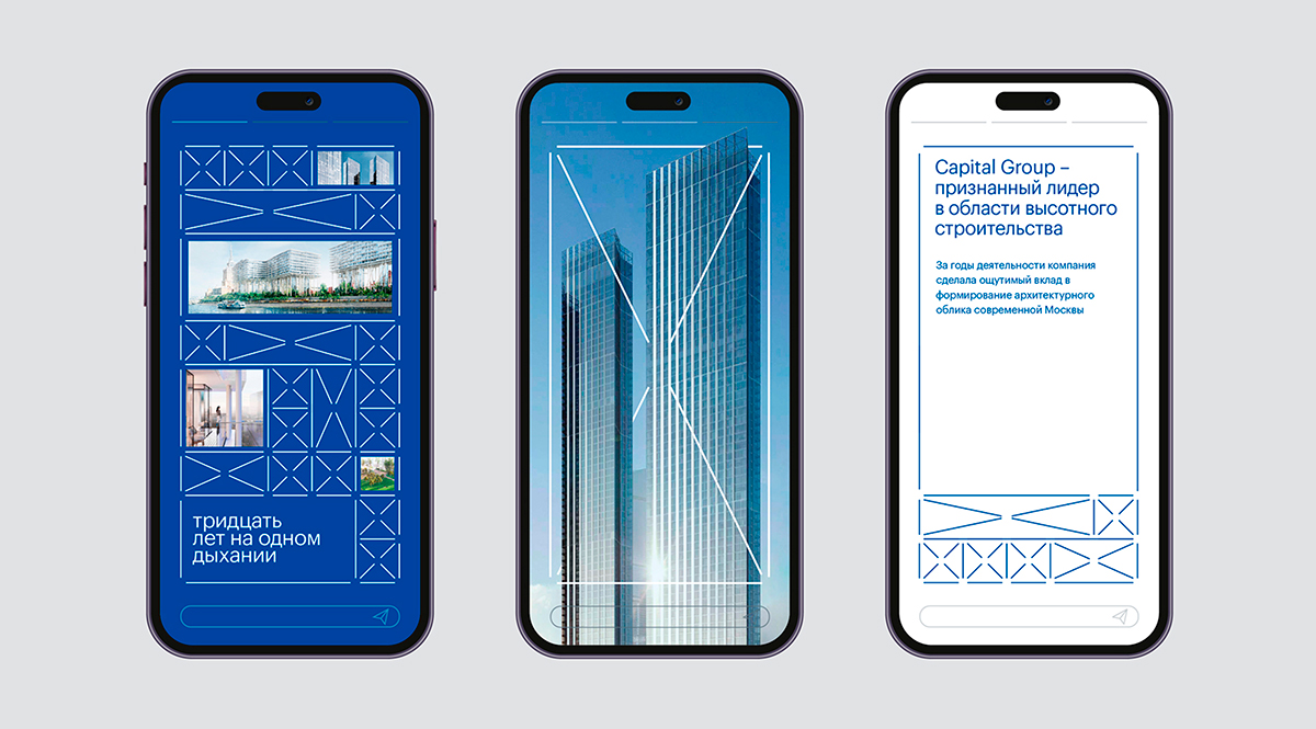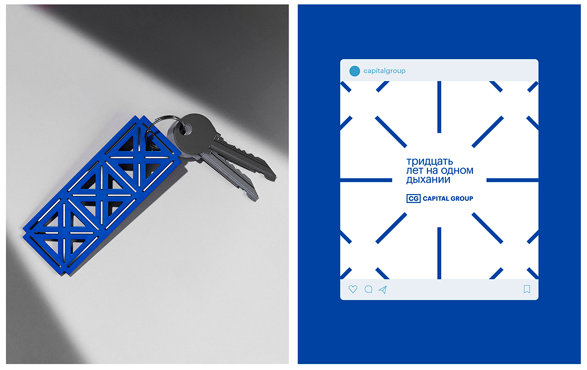 «Леса» стали каркасом, в который вписали реализованные объекты Capital Group – знаковые здания и комплексы превратились в паттерн и основу визуального языка. В дальнейшем эта сетка масштабировалась на мерч, digital-материалы, социальные сети, полиграфию, а также дополнила образ главной корпоративной конференции.