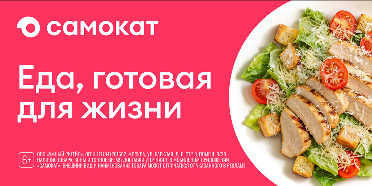 Коммуникацию поддерживают разные рекламные форматы. Самокат выпустил ролик на ТВ с фокусом на сюжетах из повседневной жизни и блюдах из ассортимента. А также ритейлер разместил рекламу на 3D-фасадах в Москве и запустил серию digital-баннеров.