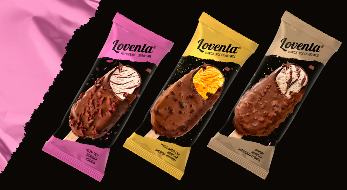 Бренд LOVENTA расширяет свой портфель линейкой эскимо. Перед командой AVC стояла задача разработать дизайн, который объединит все продукты бренда. Важно было визуально передать не только вкусовые оттенки каждого десерта, но и общую атмосферу утонченности, побуждая покупателя выбрать Loventa для особых моментов или подарка.