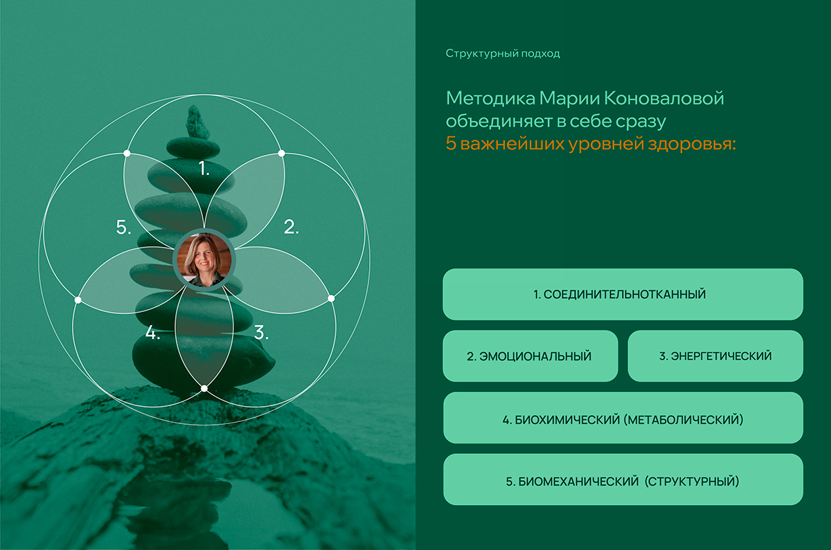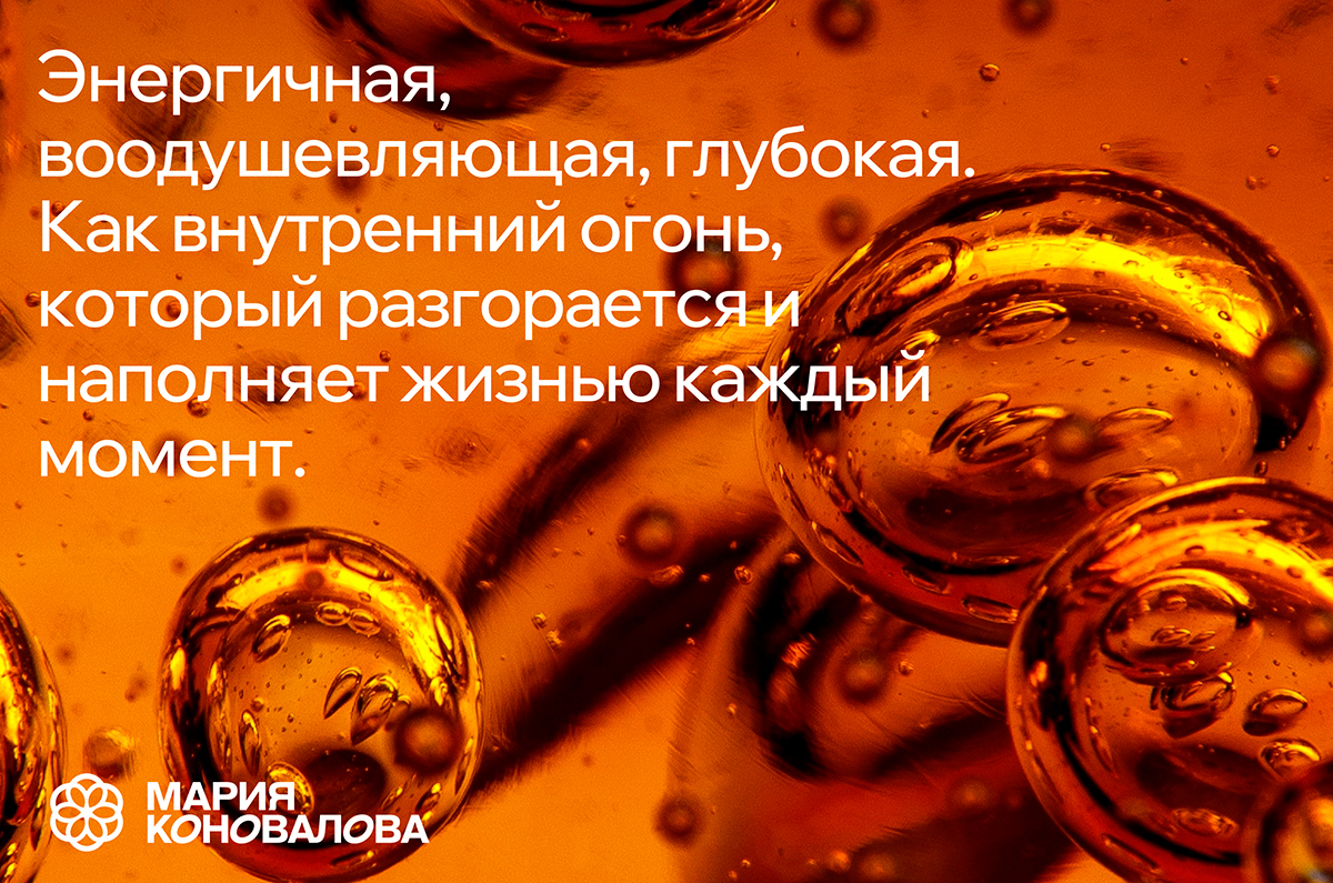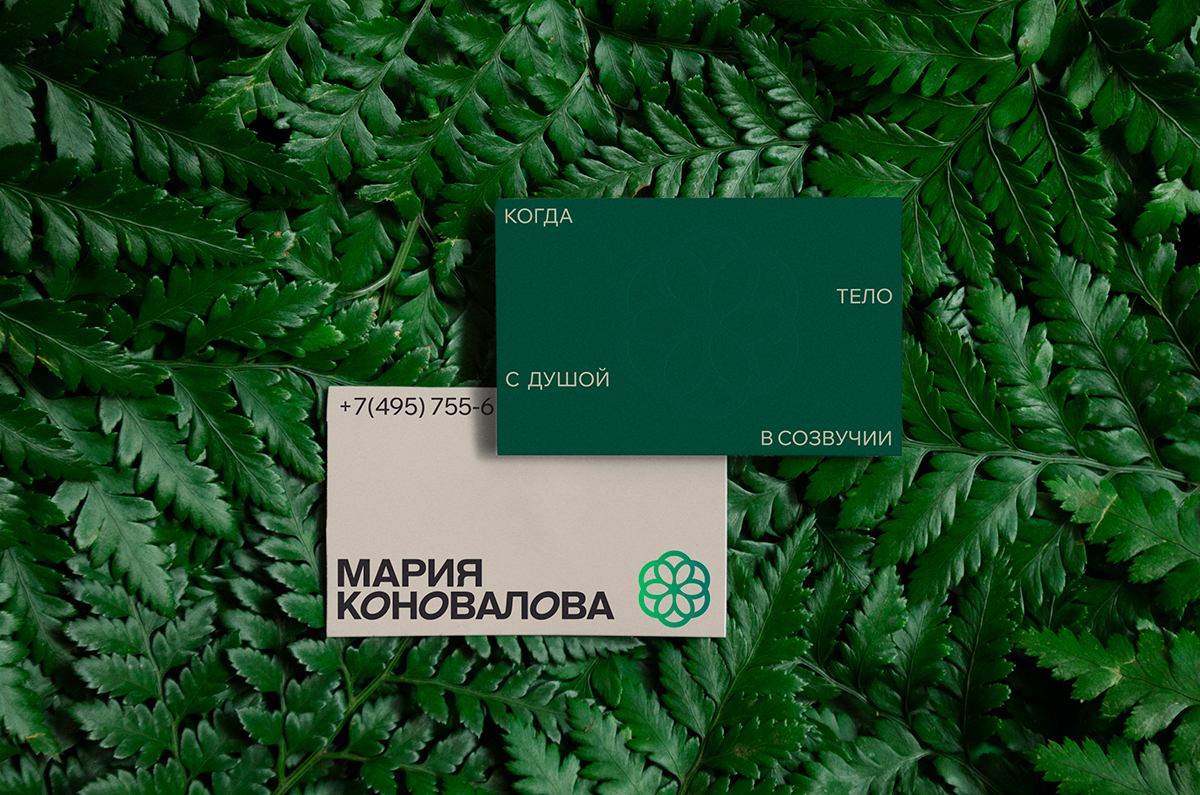 Центральным вербальным выражением бренда стал слоган «Пробуждаю силу внутри». Эта формулировка отражает философию работы Марии Коноваловой: здоровье человека рассматривается не как внешнее воздействие, а как процесс восстановления внутренних ресурсов организма. Задача специалиста — не просто маскировать симптомы, а помогать человеку заново почувствовать собственную силу, устойчивость и гармонию.