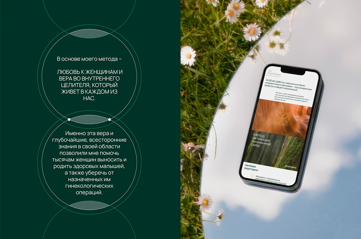 Визуальная система бренда построена вокруг идеи природной гармонии, целостности и жизненной энергии.