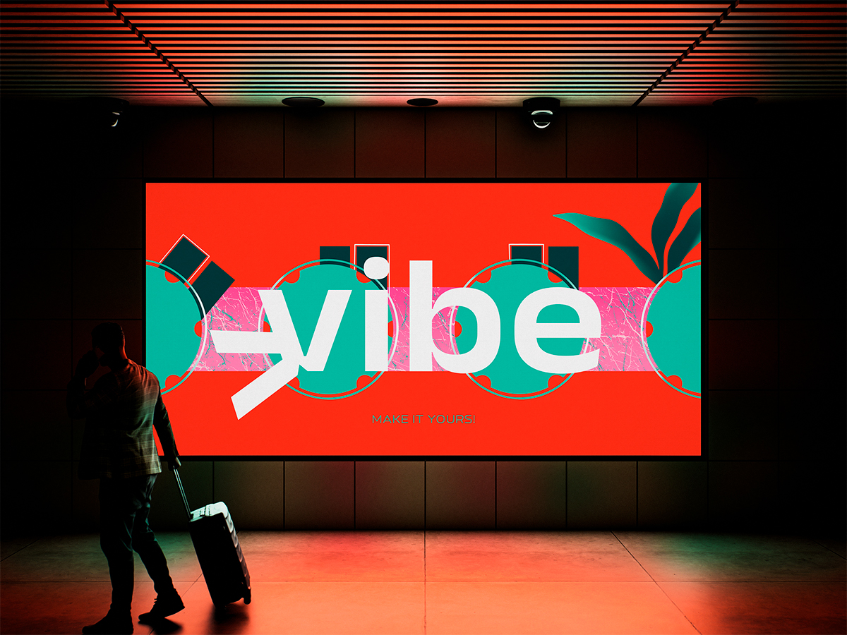 Название VIBE отсылает к понятию «свой вайб» — уникальной атмосфере, энергии и чувству принадлежности. Команда проработала несколько вариантов, но в итоге нейминг возник в процессе обсуждений с клиентом. Он задал тон всей коммуникации: лёгкий, с иронией, без избыточного пафоса. Слоган Make it yours! — призыв сделать пространство своим.