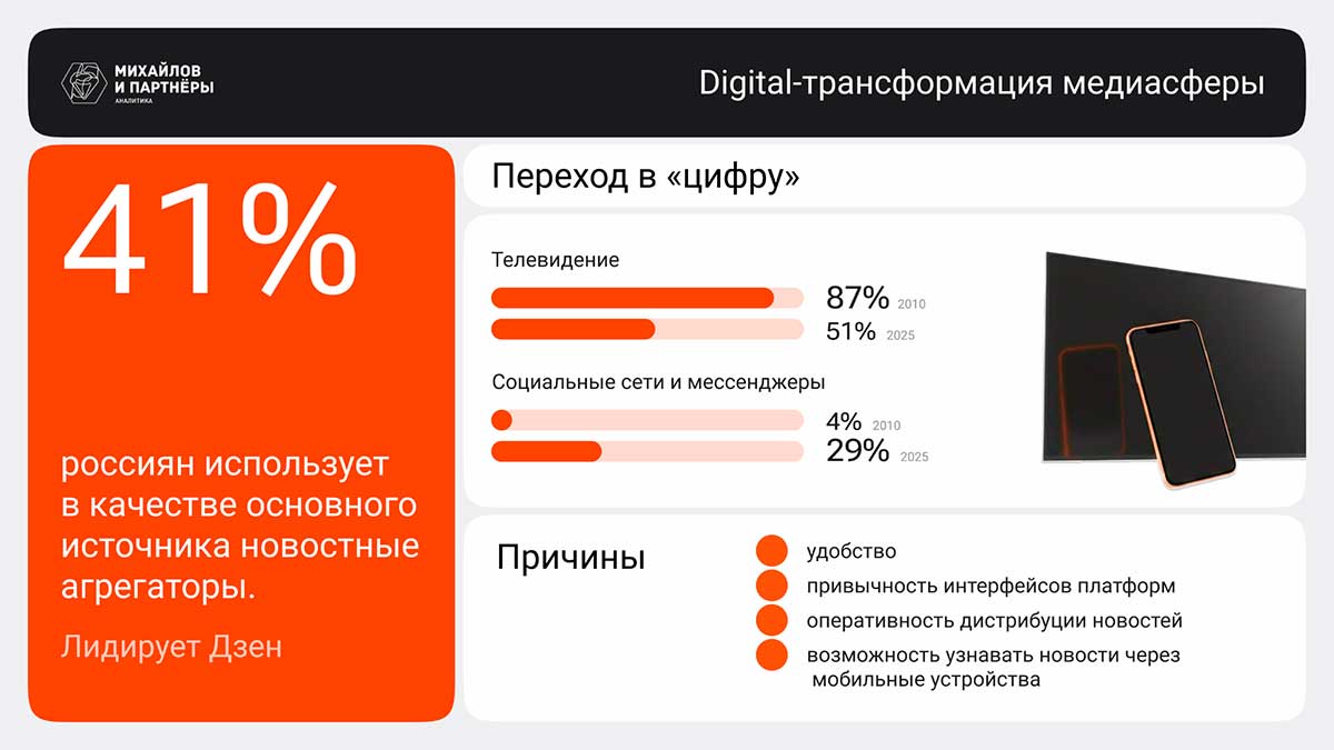 Новостная повестка уходит в платформы: "Михайлов и партнёры. Аналитика" назвали ключевые тренды медиарынка