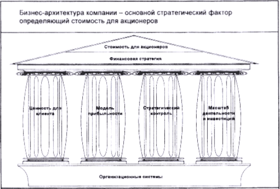 Бизнес-архитектура. По своей сути достаточно близка к бизнес-модели. В интерпретации компании "Стратегика" она выглядит следующим образом.