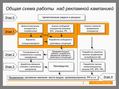 Перед началом повествования хотелось бы напомнить общую схему и последовательность работы над рекламной кампанией (смотри рисунок 1).