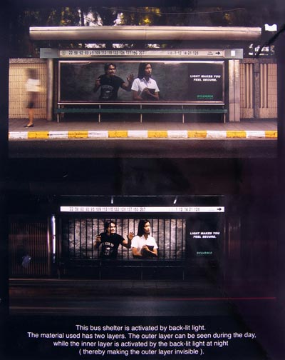 Интересная работа. Что-то подобное мы уже видели в исполнении фирмы Philips. Там тоже речь шла о световых приборах, с помощью которых можно видеть мир с новой стороны, которую при дневном освещении разглядеть просто невозможно. Вот и здесь мы лицезреем игру света...В кадре остановка общественного транспорта. Во всю ее длину висит некая фотография, на которой фигурирует девушка в белой рубашке с короткими рукавами и некий молодой человек в темной майке с теми же короткими рукавами. Что делает сей хлопец понять сложно, но по его виду можно заключить, что он испытывает неприязнь к девушке в белой рубашке. Второй кадр - та же остановка общественного транспорта, но ночью. Работает подсветка, в лучах которой молодой человек в темной майке оказывается за решеткой... Судя по всему, смысл в том, что ночное освещение города лампами производства фирмы Sylvania помогает бороться с преступностью. Маньяк не станет нападать на жертву в освещенном месте, так что молодые, красивые девушки в белых рубашках с коротким рукавом могут спокойно ждать общественный транспорт, наслаждаясь красотой ночи.