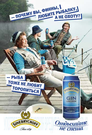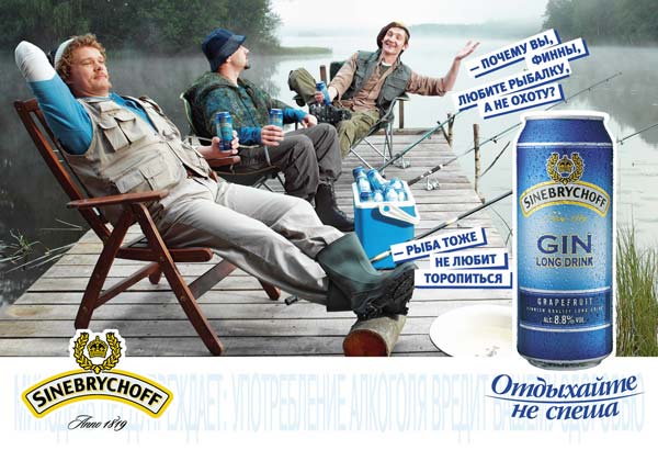 РА Great разработало осеннюю рекламную кампанию слабоалкогольного коктейля Sinebrychoff ("Балтика").Старейший финский джин-тоник Sinebrychoff – один из самых популярных слабоалкогольных коктейлей на рынке Северо-Запада России. Осенняя кампания развивает концепцию неторопливого отдыха по-фински. Она проходит под слоганом "Отдыхайте не спеша".