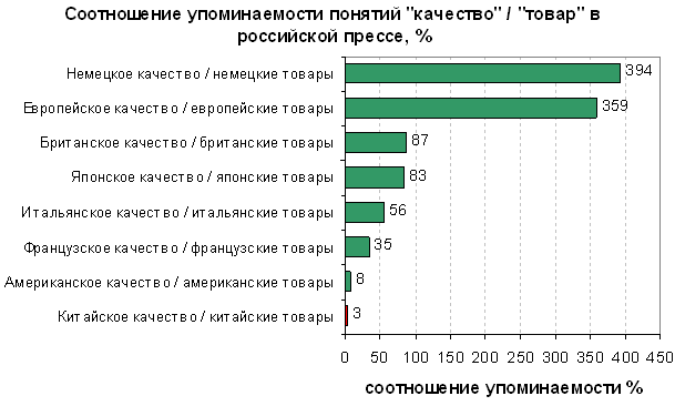 Как видно из диаграммы, по упоминаемости в российской прессе лидируют понятия "китайские товары" и "американские товары".