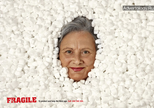 Рекламная кампания: Fragile. To protect and help the third age. Call 800 300 300