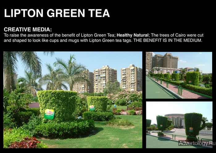 Нестандартная реклама "Lipton Green Tea tree", бренд: Lipton, агентство: JWT Cairo