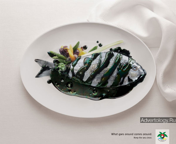 Слоган: What goes around comes around. Keep the sea clean.
