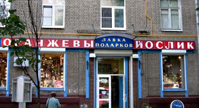 Описание: Магазинчик подарков и сувениров на улице Профсоюзной (метро Профсоюзная, Москва). Возникает такой вопрос, то ли это рекламный ход для привлечения внимания, то ли кто-то просто ошибся с размерами вывески?... :)