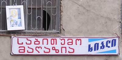 маленькое окно, а к стеклу прилеплены рекламные проспекты. Мерчандайзинг!