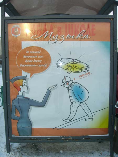 Описание: Весной сфотографировала плакат на остановке. Видимо школьник думал, что в ушах бананы, а там... аудио-плеер =)))