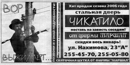 Описание: Реклама дверей напечатана в Пермской газете "Время Закамское" от 19 и 26 января 2007 г.
