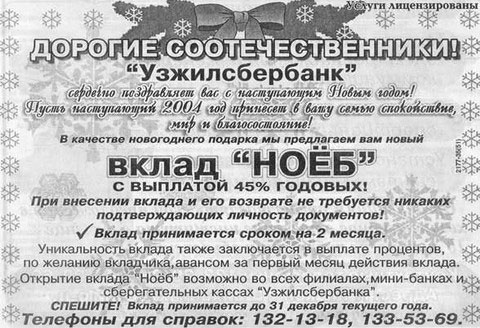 Описание: Вот такая реклама была у одного узбекского банка. Ноёб - по узбекски, типа "необыкновенный"