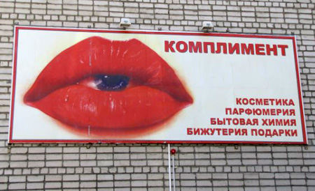 Описание: Реклама магазина "Комплимент" на стене дома в г. Заречный, Свердловской области.